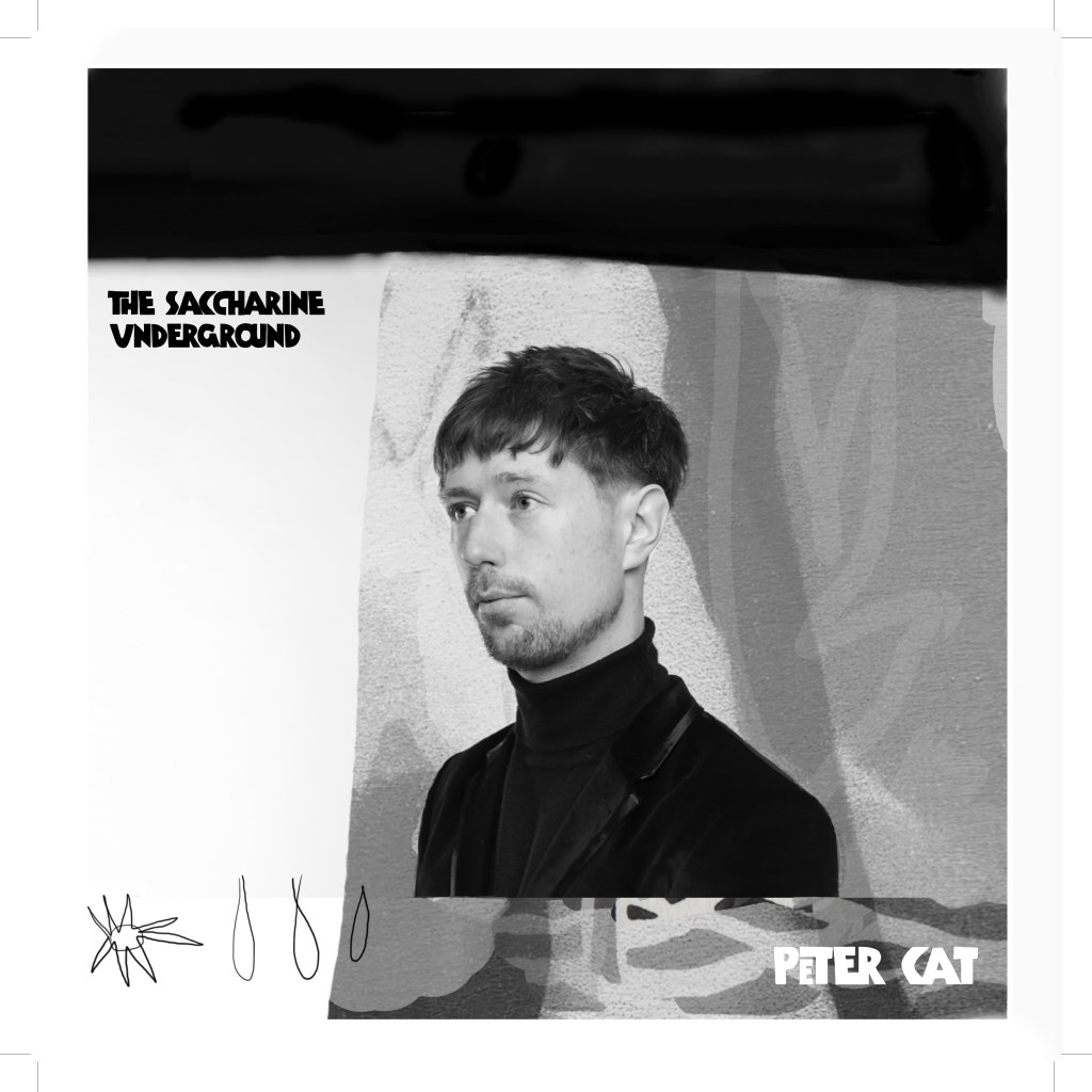 Next Friday sees the release of The Saccharine Underground, the debut album by Glasgow-based art rock outfit, Peter Cat. Well, I say art rock, but in truth it’s very difficult to tie up what he/they do in a neat little package. Essentially Peter Cat’s sound is an idiosyncratic mix of influences and eras – from 60s chamber pop crooners and 70s glam, through to 80s, 90s, and 00s indie, by way of post-punk and all-out pop. Think the love child of Neil Hannon and Alex Kapranos trapped in a Morrisons Local in Glasgow, trying to recreate Scott 3 by memory, equipped only with instruments loaded with presets from This Is Hardcore.